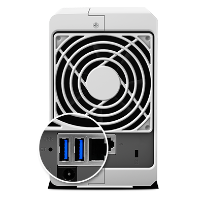 DS216j 配備 USB 3.0 埠,讓你能夠連接不同的外接儲(chǔ)存裝置,同時(shí)擁有快速、高效的文件傳輸效率。透過支持 USB 3.0 接口,其提供較前一代快 10 倍的傳輸速度,不僅使外接硬盤的數(shù)據(jù)傳輸更為順暢,也可降低耗電量。