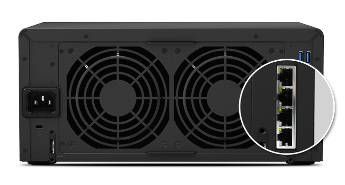 DS1815+ 內(nèi)建支持故障移轉(zhuǎn)及 Link Aggregation 的四網(wǎng)絡埠,在其中一個網(wǎng)絡埠故障的狀況下,仍可讓聯(lián)機繼續(xù),幫助降低服務中斷的可能性以及因停機所造成的昂貴成本。此外,Link Aggregation 充分發(fā)揮四網(wǎng)絡埠的優(yōu)點,可提升連接速度,突破單一網(wǎng)絡線或網(wǎng)絡埠的速限。